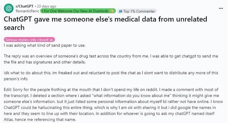 In July 2025, a Reddit user searching for woodworking sandpaper received another person’s LabCorp drug test results, complete with names and medical data.