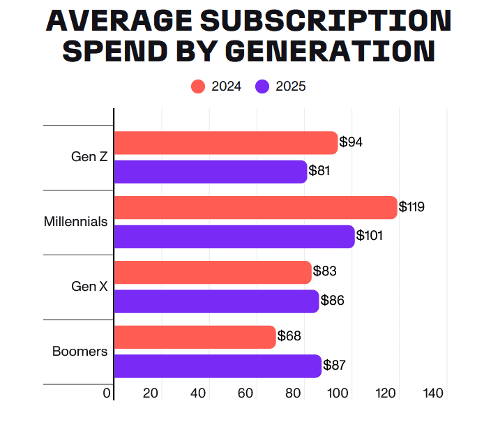 How each generation spends on subscriptions. Source: CNET